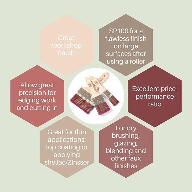 The brush is made from 100% synthetic fibers. Recommended for the processing of waterborne paints.